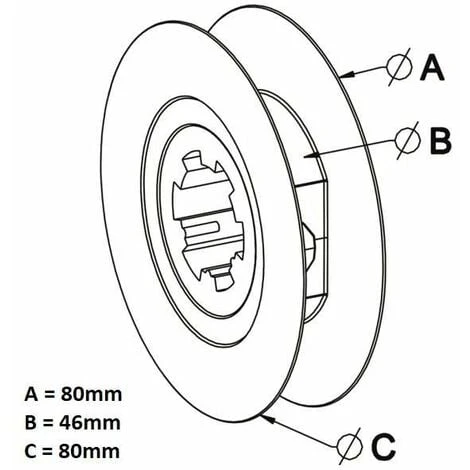 Poulie de guidage de volet roulant ; Pour sangle de 12 à 15mm ; Matière = Plastique ; Couleur = Noir ; Diamètre total = 80mm ; Sortie crabot de ZF de 27 mm femelle (se monte sur un embout ou un moyeu crabot de 27 mm mâle) ; Assure l’enroulement et le déroulement de la sangle et ainsi l’ouverture et la fermeture du volet roulant manuellement ; A clipser