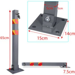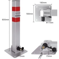AUFUN Parkwatch 60cm Poteau De Barrière De Parking Pliable Avec Bornes Stables 3 Clés , Gris Argenté