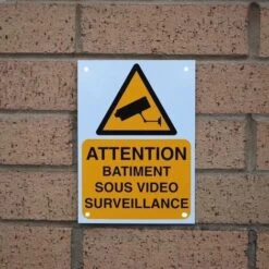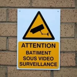 Panneau Extérieur ‘ATTENTION BÂTIMENT SOUS VIDÉOSURVEILLANCE’ – Plastique Rigide (format A4)