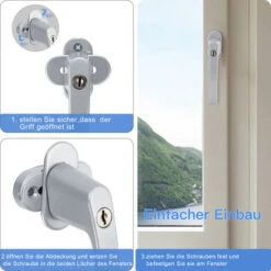 SWANEW Poignée De Fenêtre Poignée De Fenêtre Alu Verrouillable Aluminium Serrure Set Design Gris 4X