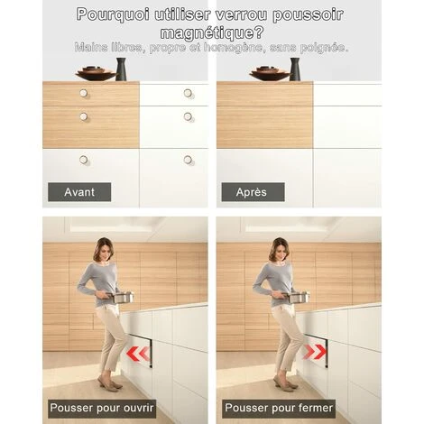 Longue course avec aimant : la longue course avec aimant intégré assure un point de fermeture sûr, qui unit la porte plus fermement et ne « dévie » plus les portes. Rendre ce loquet plus adapté aux portes de taille moyenne. Installation facile : vous pouvez installer le poinçon ultra fin avec l’adhésif inclus sans percer les trous de vis. Venez également avec des vis d’impact. Installez deux vis dans le support inférieur. La pointe de l’aimant peut être ajustée à 3 mm, vous n’avez donc pas à vous soucier de la difficulté à trouver le support. Démontage facile : après l’installation en soulevant la pointe de l’aimant avant pour le démontage. Avant l’installation, utilisez un tournevis à tête plate pour ouvrir la queue pour le démontage.)
