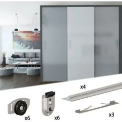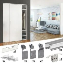 Système Coulissant SLID’UP 130 Pour 2 Ou 3 Portes De Placard – Rail 1,94 M – 70 Kg