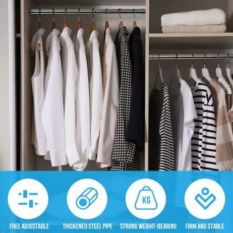 5. Barre de penderie multifonction : barre télescopique en acier inoxydable, idéale pour une utilisation en tant que garde-robe, tringles à rideaux, porte-serviettes dans les salles de bain, rampes extérieures dans les jardins et beaucoup d’autres applications