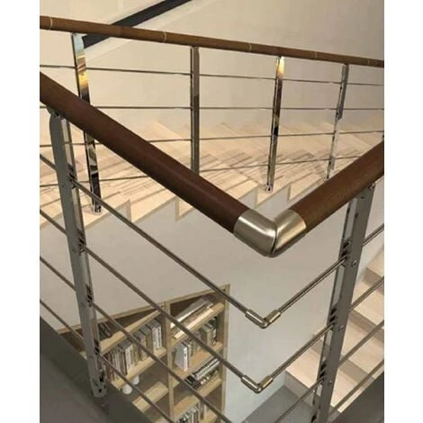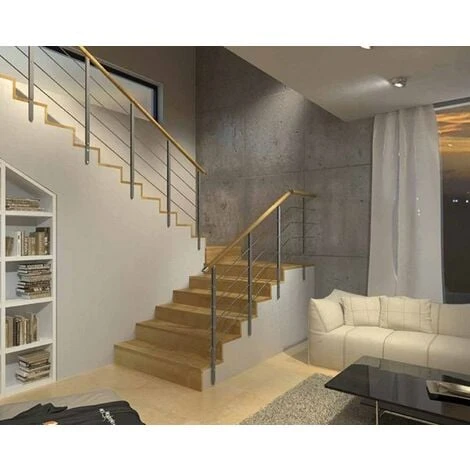 – Main courante réalisée en bois (hêtre) et fixée par des supports spéciaux qui permettent de régler l’inclinaison (inox satiné possible sur demande : nous consulter).