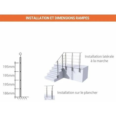 – Plusieurs type de platines de fixations sont disponibles afin de pouvoir installer la rampe aussi bien sur des escaliers en béton que des escaliers modulaires ou traditionnels.