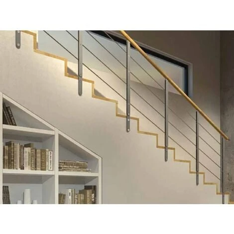– La rampe peut être fixée soit sur la marche avec un étrier traditionnelâ€? en T ou une fixation plus exclusive au design arrondi, soit sur le côté du mur ou du limon afin de maximiser l’espace de passage, soit, pour finir, sous la marche avec un étrier en L.