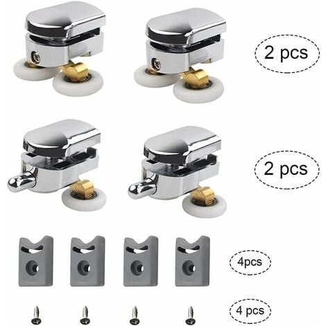 - Rouleaux de porte de douche : 4 rouleaux de 23 mm (2 rouleaux supérieurs, 2 rouleaux inférieurs). Installé en haut et en bas de la porte de douche.