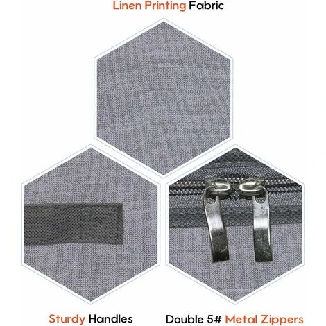 Quatre poignées durables: deux poignées avant larges et deux poignées latérales renforcées pour un transport et un retrait faciles sous le lit. Les deux côtés sont en tissu double couche de haute qualité.