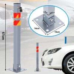 SWANEW 4 Kit Poteau De Délimitation 65cm Barrière De Parking Rabattable Bollard à Bétonner