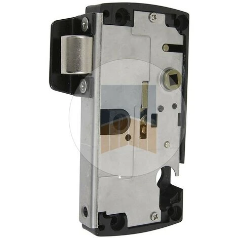 Serrure réversible avec pêne rentrant pour portail battant à ouverture à droite ou à gauche.