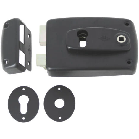 - Serrure 1 point en applique FREELOX pour profil européen aux lignes arrondies avec coffre et gâche en acier noir embouti
