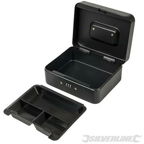 Coffre-fort verrouillable en acier avec revêtement résistant à la corrosion. Verrouillage par combinaison à 3 chiffres pour empêcher tout accès non-autorisé. Équipé d’un plateau compartimenté amovible, parfait pour les pièces de monnaie. Idéal pour sécuriser la monnaie, les documents importants ou encore les petits objets de valeur. Poignée repliable pour un rangement facile.