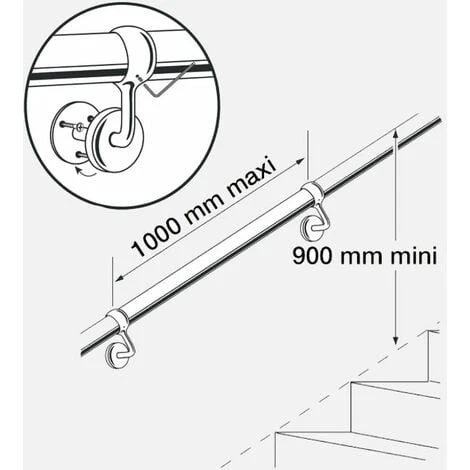 Le support de main courante permet de fixer la rampe au mur à chacune de ses extrémités. Adapté pour une mise en œuvre intérieure uniquement.