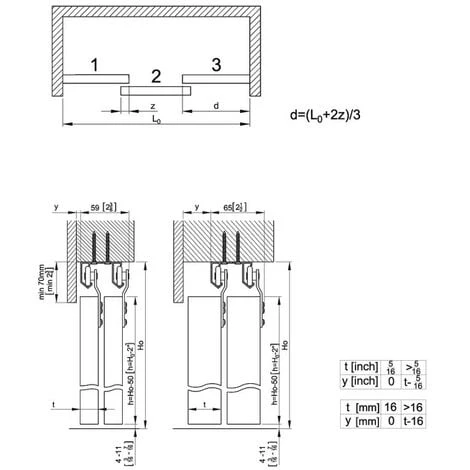 Système coulissant SLID’UP 110 pour 2 ou 3 portes de placard – rail 1,94 m – coulissant suspendu.