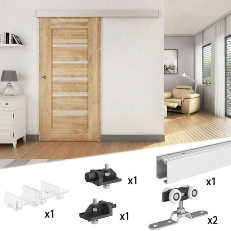 Système coulissant SLID’UP 170 pour 1 porte de séparation à galandage ou en applique (équerres non comprises) – Rail simple de 1,94 m – coulissant suspendu.