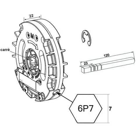 Livré avec un axe carré de 10 mm et un clip.