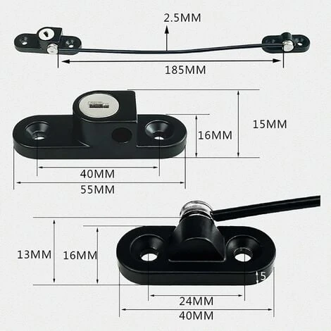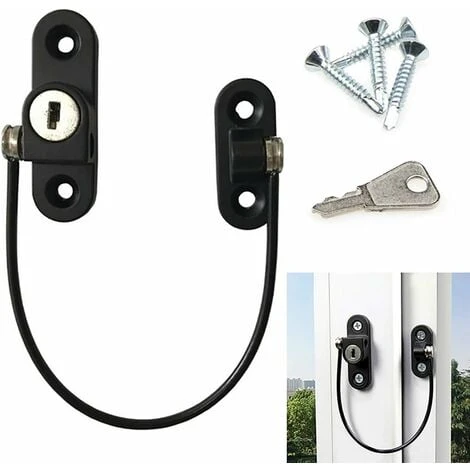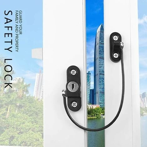 Informations sur le produit : Le limiteur de fenêtre est fabriqué en ABS/fil d’acier/304 Acier inoxydable, bonne qualité et durable, le câble est constitué de plusieurs fils d’acier torsadés dans la mesure de supporter plus de pression, pas facile à endommager.Avantages du produit: la distance d’ouverture de la fenêtre peut être limitée pour empêcher l’enfant d’ouvrir la fenêtre comme vous le souhaitez, ce qui permet aux enfants de tomber accidentellement. En même temps, les voleurs dans la maison ne passent pas à travers la fenêtre de voler.Facile à installer: le bloqueur de fenêtre à câble verrouillable est un appareil simple, vous pouvez d’abord faire un trou sur la fenêtre ou la porte avec une perceuse électrique, puis le fixer avec des vis.Verrouillage et déverrouillage: design spécial de limitation qui offre une limitation d’environ 15 cm pour laisser entrer l’air frais, et la fenêtre peut être complètement ouverte après avoir retiré le câble pour une extrémité en utilisant la clé. Larges applications: convient à la plupart des types de fenêtres et de petites portes, armoires, tiroirs. Idéal pour la sécurité des maisons, hôpitaux, bureaux, publics et commerciaux.