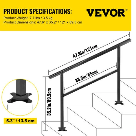 Utilisation à l’Intérieur & à l’Extérieur : La rampe d’escalier est indispensable pour votre famille avec des performances fiables. Elle peut être installée sur les marches en béton, en brique et en bois des porches, balcons, jardins, bâtiments résidentiels, hôtels, garages, etc. Cette main courante d’extérieur est idéale pour les endroits où vous ne pouvez pas la fixer à un mur ou à une structure.