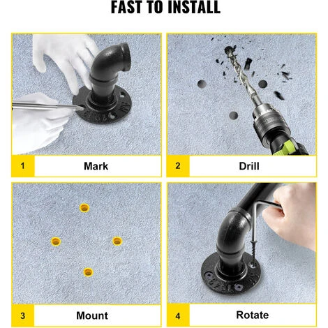 - 【KIT DE GARDE-CORPS COMPLET】 – Tous les accessoires sont inclus pour linstallation deune rampe de tuyaux. La base φ 85 mm et chaque base avec 4 pre-trous et vis deexpansion assurent que la rampe soit bien fixee au mur. Un support mural en forme de T permet de connecter des supports multi-pieces ; le tuyau deangle rond φ 32 mm permet de sassurer que les vetements ne saccrochent pas ou ne sont pas rayes lors du passage.