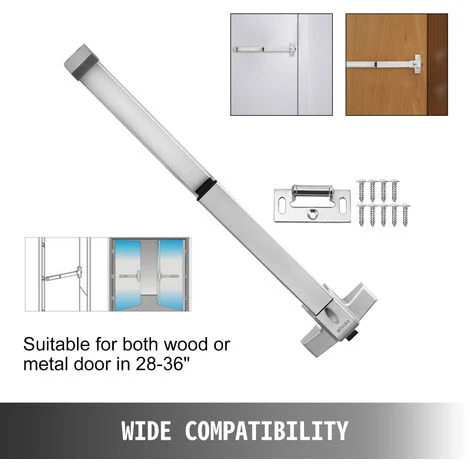 【COMPATIBILITÉ DES PORTES】 – Convient aux portes de 71 – 91 cm de large. La barre de poussée de porte d’urgence peut être utilisée sur des portes en bois, en métal ou en composite (non utilisée pour les portes en verre).