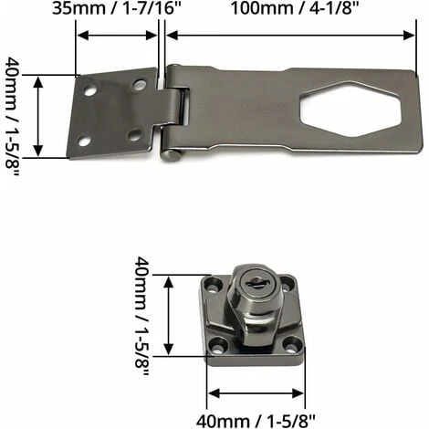 Matériau de haute qualité : alliage de zinc épais, finition chromée, robuste, durable et sûr. Installation facile : installation rapide et facile, vous n’avez pas besoin de clé pour le verrouiller. Largement utilisé : utilisé pour le cadenas, la serrure de porte de sécurité, la porte d’entrée, la porte de garage, la boîte en bois, le tiroir de fenêtre, l’armoire et d’autres meubles pour plus de sécurité. Haute sécurité : matériau épais, durable et solide, pas de déformation, pas de décoloration, pas de rouille, parfait pour garder vos petits objets en sécurité. Contenu de la livraison : 1 jeu de serrure de porte de 10,2 cm + 6 vis de montage + 2 clés Caractéristiques : trappe QWORK avec clé, installation facile Utilisé pour cadenas, serrure de sécurité, porte d’entrée, porte de garage, boîte en bois, tiroir de fenêtre, armoire et autres. les meubles ajoutent une sécurité supplémentaire. Taille : 4 (10cm). Contenu de la livraison : 1 jeu de serrures de porte 4 (10cm) + 6 vis de fixation + 2 clés