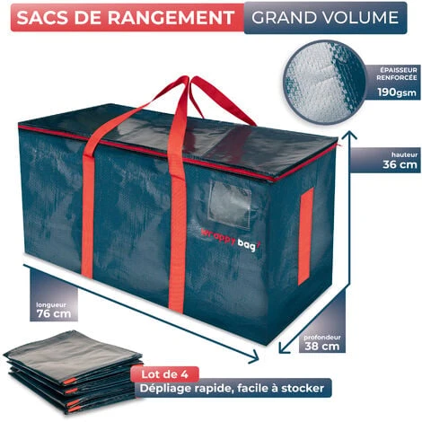 POUR DES DÉMÉNAGEMENTS SIMPLIFIÉS : Vous avez l’habitude d’utiliser des cartons classiques pour vos déménagements ? Vous allez être surpris(e) de l’efficacité de nos sacs de rangement XXL. Plus pratiques à transporter grâce à leurs poignées renforcées et entièrement imperméables, nos sacs grand format vous permettront de gagner du temps tout en évitant les problèmes de dos lors de votre futur déménagement.