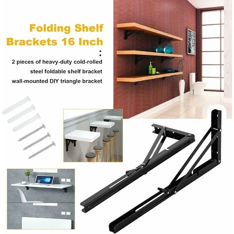 Vous pouvez construire un support d’étagère pliable ou un petit bureau pliant mural pour votre maison ou votre garage. - 【Taille et emballage】Support Console Pliable noir Equerre de 40 x 17 cm (16 x 6,7 pouces), complet avec accessoires de montage, vis en acier inoxydable de haute qualité et chevilles murales de haute qualité, vous n’avez donc pas besoin d’acheter d’autre