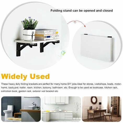 - 【Gain de place】Mural Pliable Équerre pour Étagère peuvent être verrouillés à 90 degrés. Lorsque vous souhaitez plier la table, appuyez simplement sur le bras de relaxation. D’excellentes performances, adaptées aux espaces restreints, aident à garder